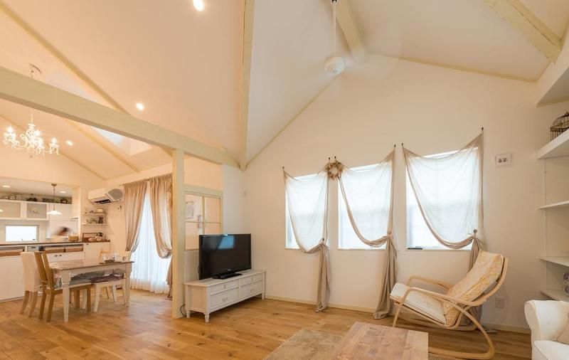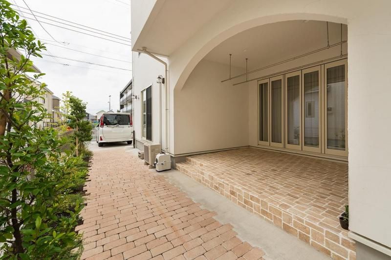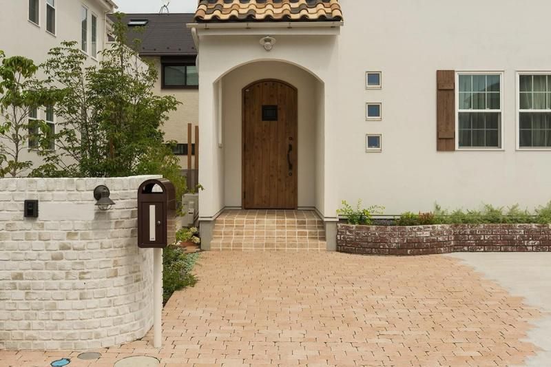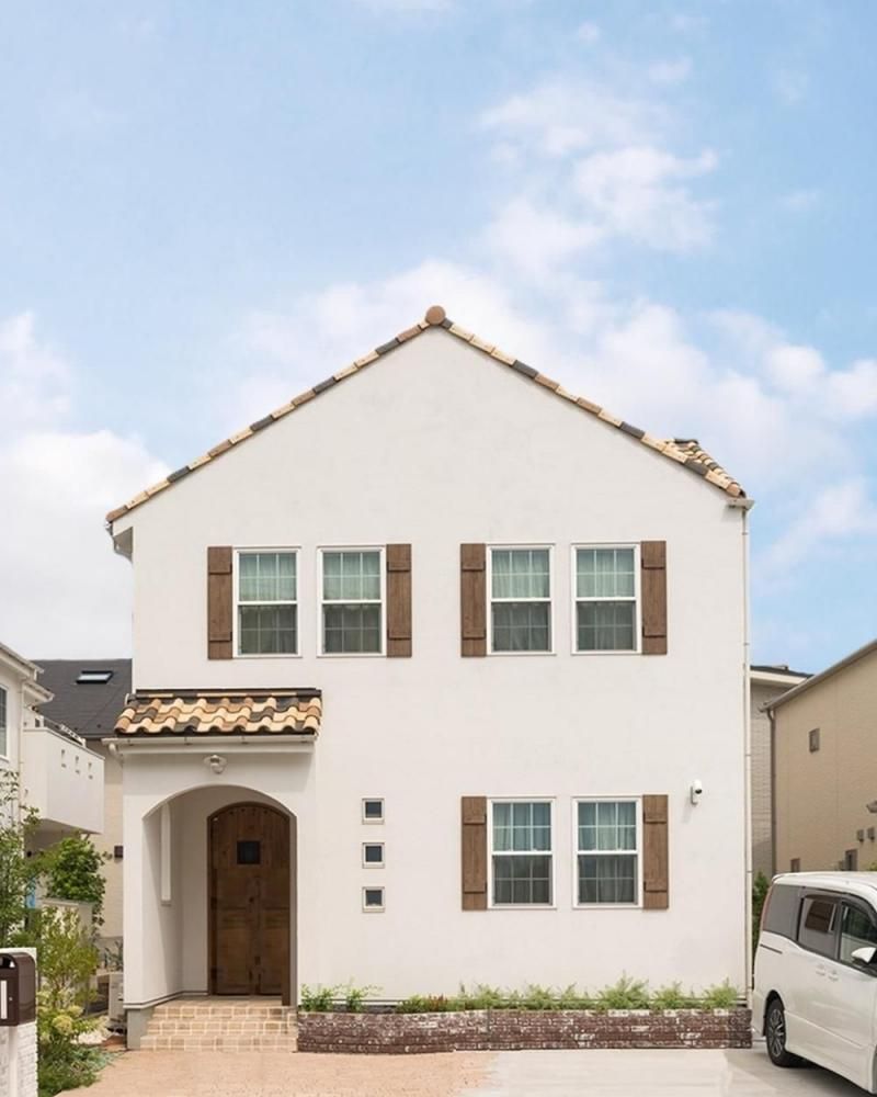瓦屋根に塗り壁仕上げのかわいい外観。