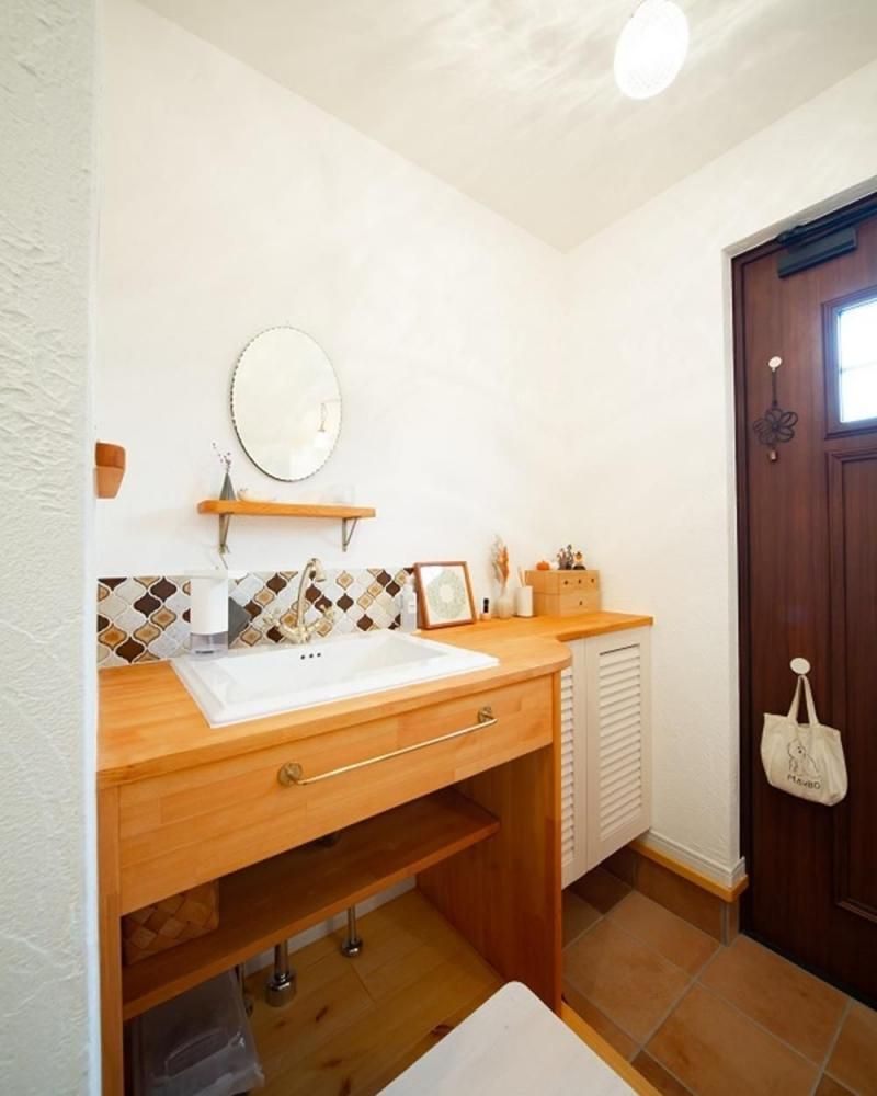 玄関ドア横の小窓や窓枠下のタイルもオシャレです。