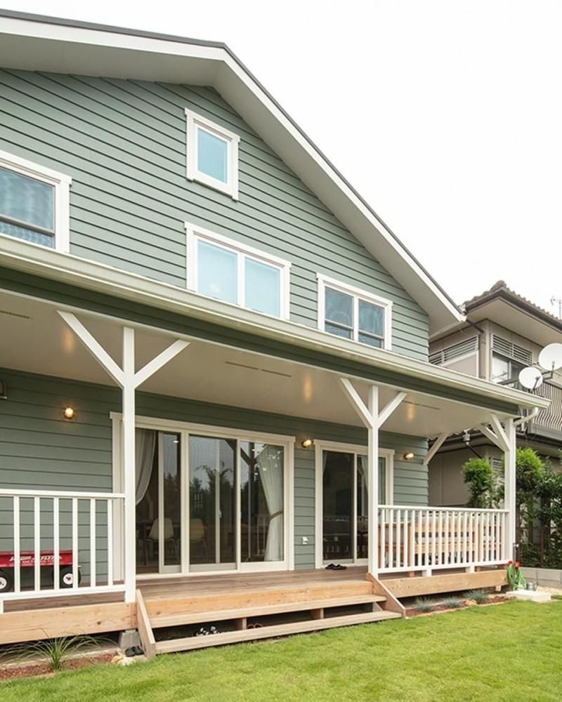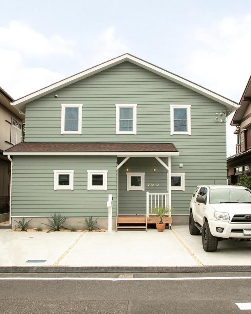 グリーンのラップサイディングが印象的なサーファーズハウス。